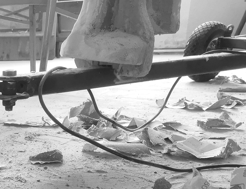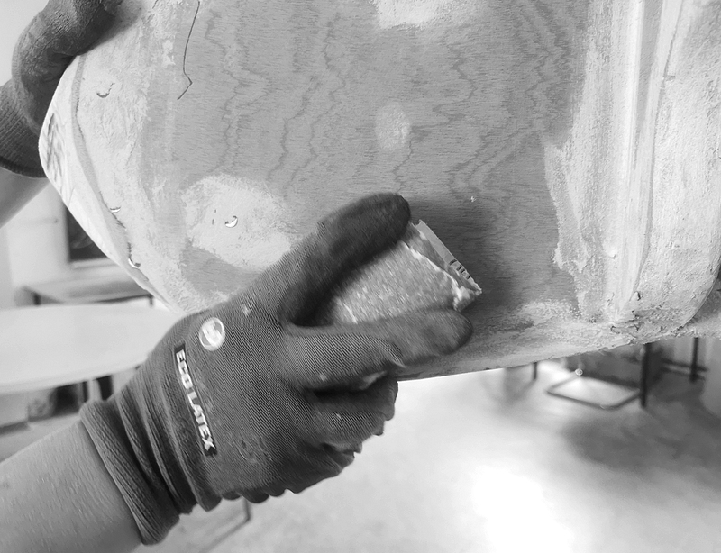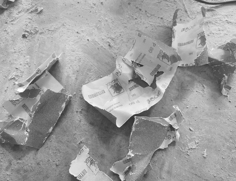 Schleifen, spachteln, schleifen. Schleifen. Kreisend. Rechte Hand, linke Hand. Luft holen. Nächstes Sandpapier. Weiter schleifen. Staub von den Wimpern wischen. Es ist warm. Staub. Schleifen. Niesen. Fenster auf, mal frische Luft. Wo lag der Schleifklotz? Neues Sandpapier. Schleifen, spachteln, schleifen. Schleifen. Schleifen. Heute haben wir nicht ganz geschafft, was wir schaffen wollten. Löbeline soll später ja nicht aussehen wie ein Stapel Holzplatten. Also: weiterschleifen.