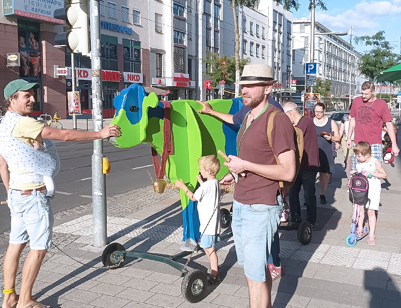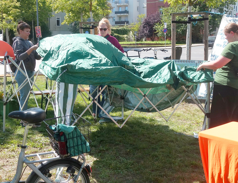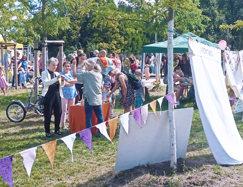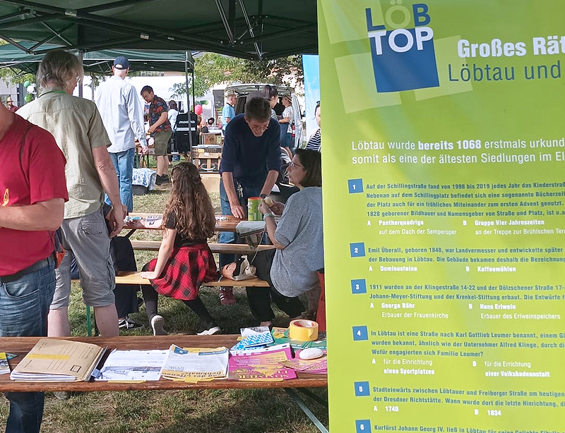 Recht herzlichen Dank all denen, die mit viel Zeit und Liebe zum Detail das Fest vorbereitet haben. Danke unserer Marlis vom Löbtop e.V. dafür, dass bei ihr die Fäden zusammenlaufen durften. Danke den behördlichen Mitarbeiterinnen, die die Nutzung des Rathausparkes genehmigt und kurz vorher für die Kürzung der wuchernden Natur gesorgt hatten. Danke den Verantwortlichen im Stadtbezirksamt und den Mitgliedern des Beirates für alle Unterstützung. Danke denen, die im Hintergrund die kulinarischen Leckerbissen zubereitet haben – die fleißigen Bäckerinnen und Bäcker der Adventgemeinde, der AWO und von Willkommen in Löbtau e.V. – besonders aber Monika, Angela, Nadine, Eva und ihren fleißigen Helferinnen und Helfern, die während des großen Feierns alles so appetitlich und gut gelaunt dargeboten haben. Danke den Vereinsmitgliedern, die vorher und hinterher die schützenden Dächer auf- und abgebaut sowie die Sitzgelegenheiten hin und her transportiert haben. Danke den flotten Tänzerinnen und Tänzern. Danke dem Kinder- und Jugendhaus T3 für die offene Tür. Danke den Akteuren Löbtaus, die mit ihren Angeboten für Neugier, Spaß und kreative Betätigungen gesorgt haben. Danke unserem vereinsinternen Moderator Rainer für das sichere Dirigieren. Danke allen kleinen und großen Besuchern des Festes für die mitgebrachte Freude, die entspannte Feierlaune und das große Interesse, für das Beisammensein, das wohltuende und einfach schöne Miteinander …