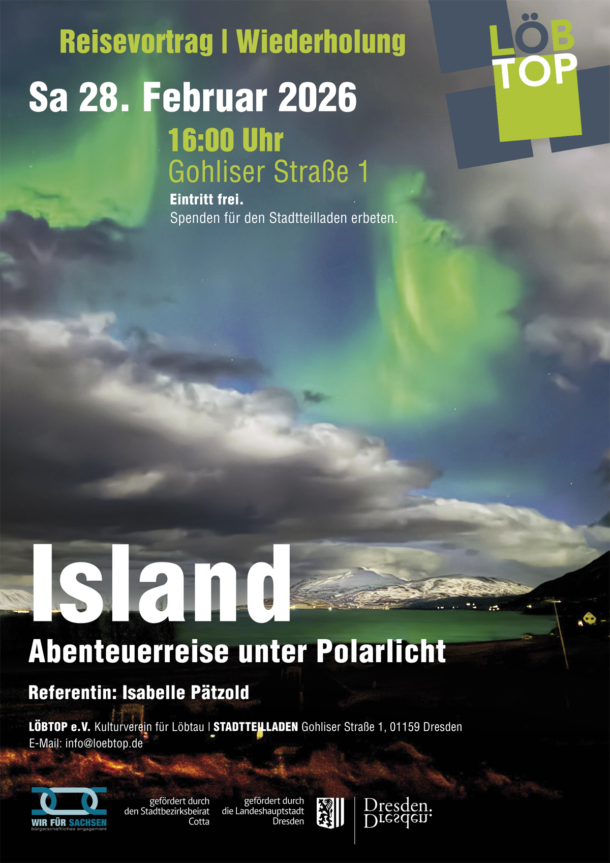 16:00 Uhr | Isabelle Pätzold erzählt mit atemberaubenden Bildern von ihrer Abenteuerreise unter Polarlicht auf Island. Herzliche Einladung in den Stadtteilladen.